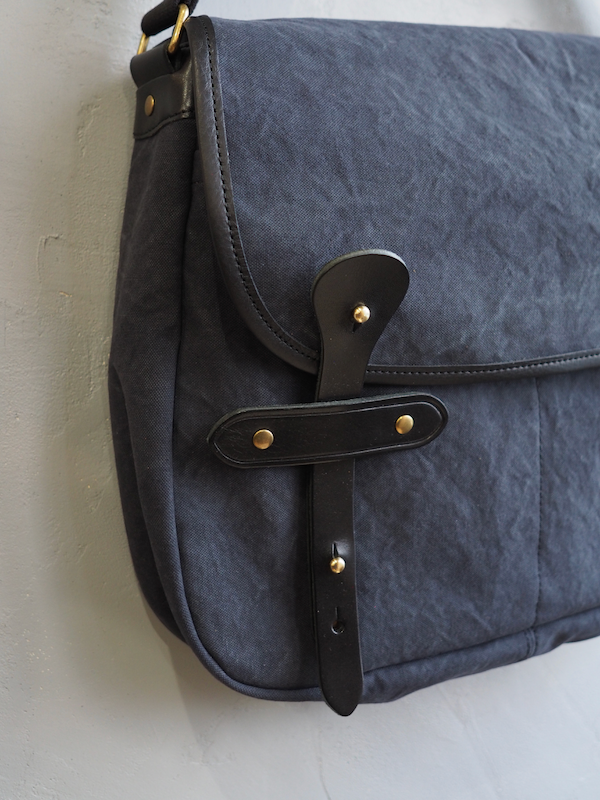ミリタリーキャンバスと留め具・ストラップ部分に上質な栃木レザーを採用した